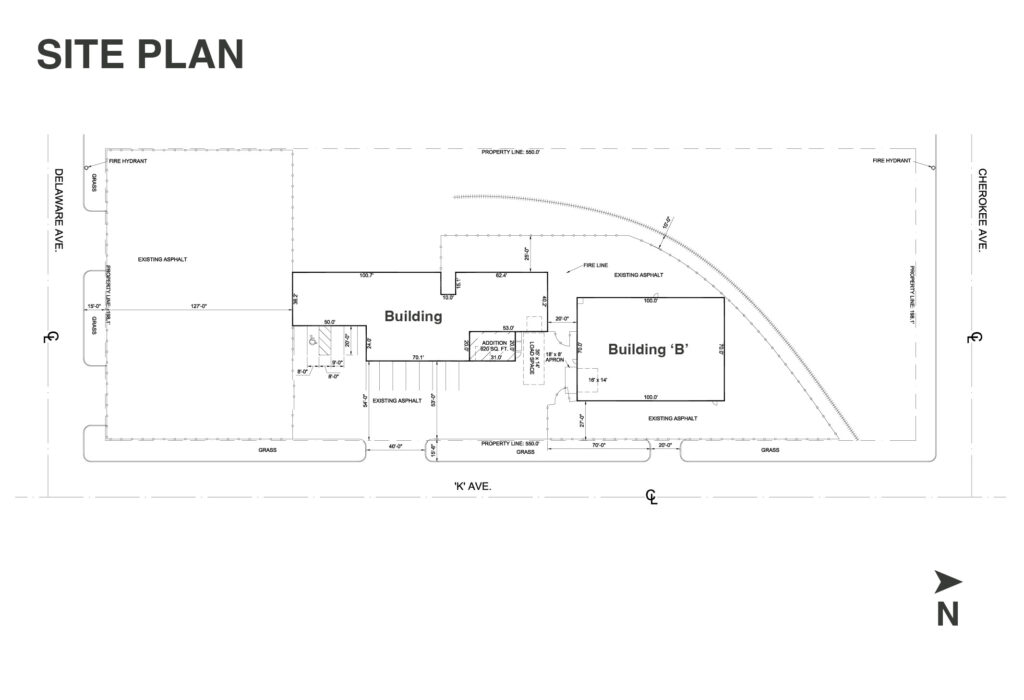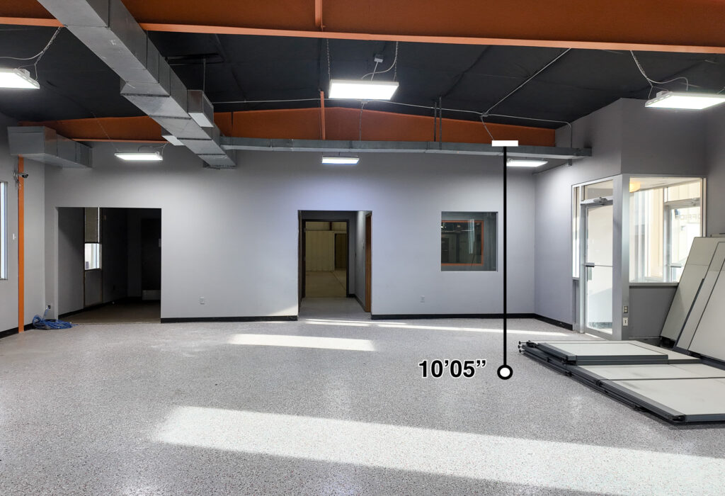• Building ‘A’ offers a flex setting with 2 private offices, open work area, restrooms, and a dedicated shop area complete with floor drainage, a utility sink, exhaust fans, forced air/heat, and in-floor oil drain pits