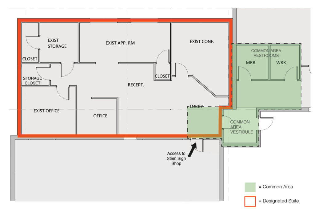 - Shared entrance and restrooms