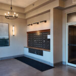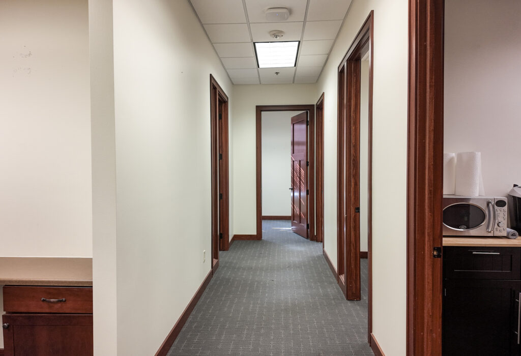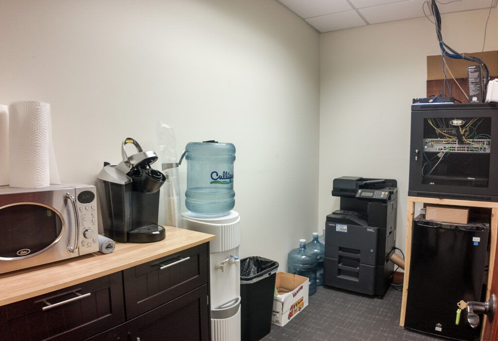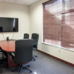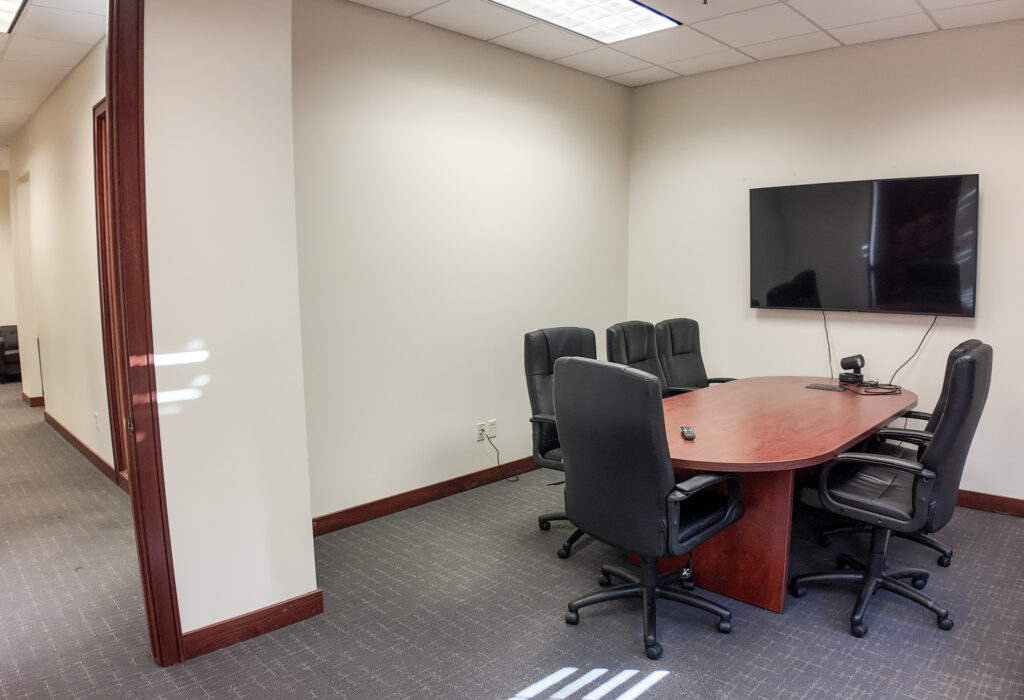 - Common area amenities include restrooms and a large conference/training room with a kitchenette