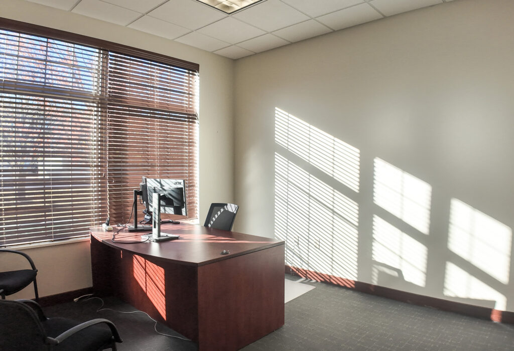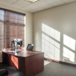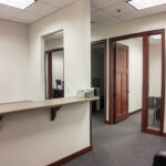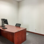 - Floor plan offers a reception desk/area, 4 private offices, conference room/large office, and an IT/file room