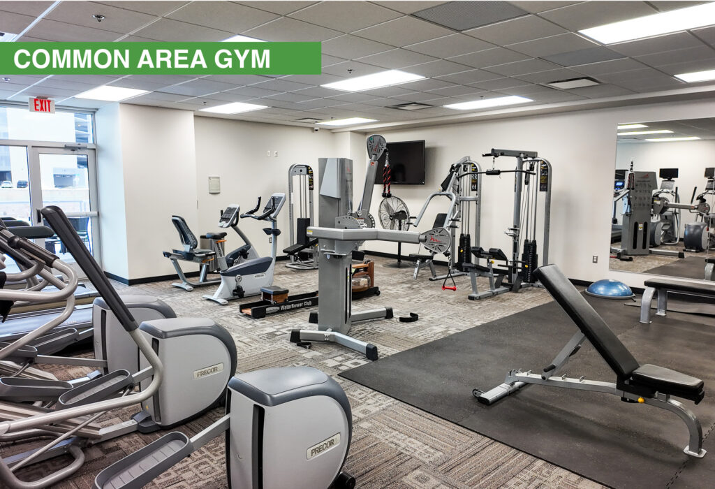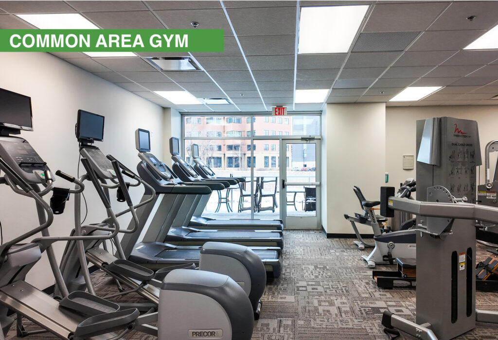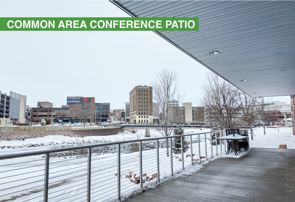 - Common area gym, patio overlooking the Big Sioux River, community training room, common area break room