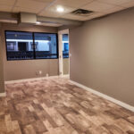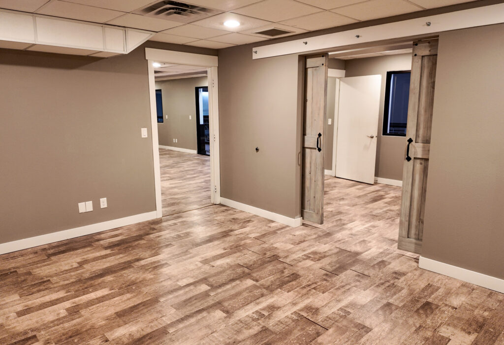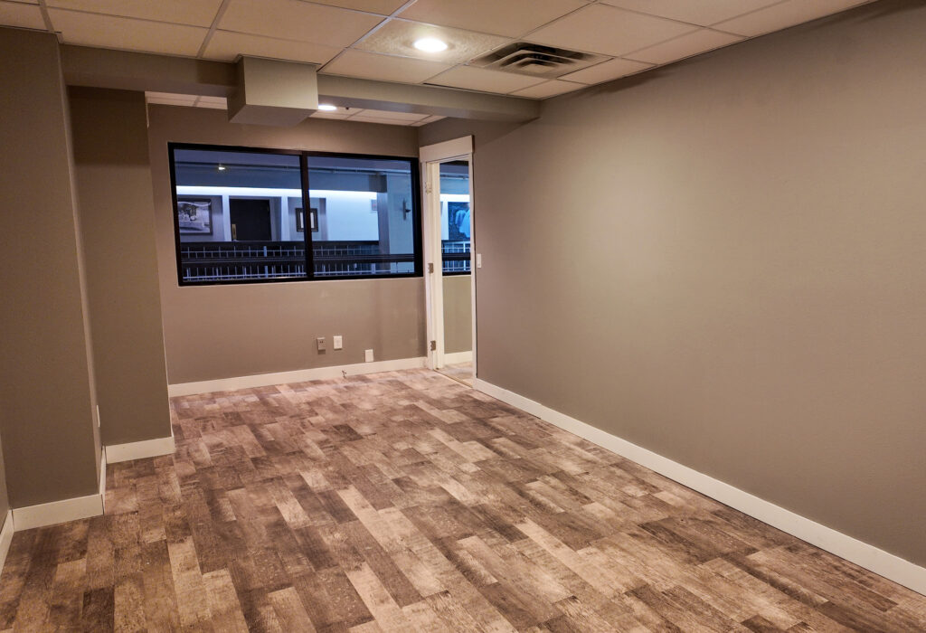 - Floor plan offers an open area, 2 private office (connected via a sliding door), and a storage area