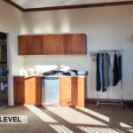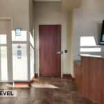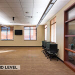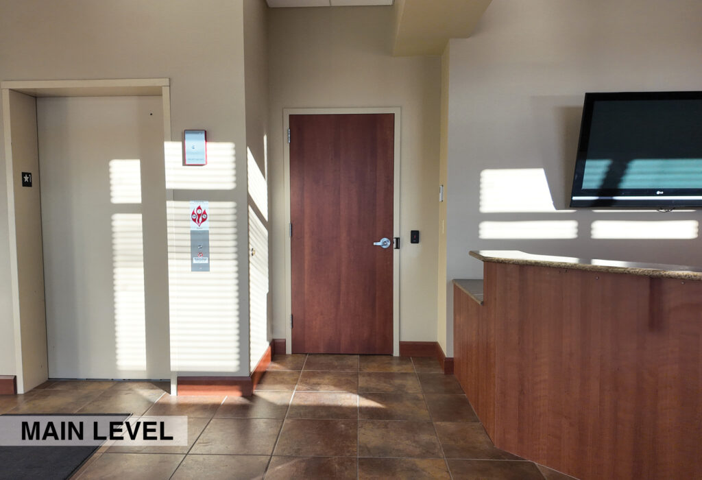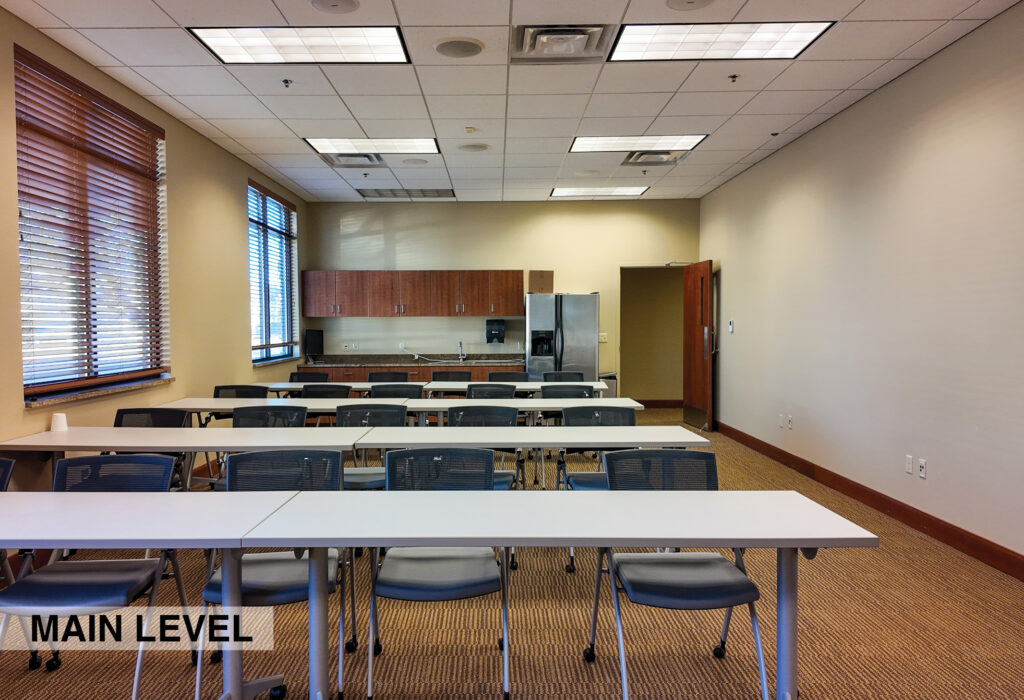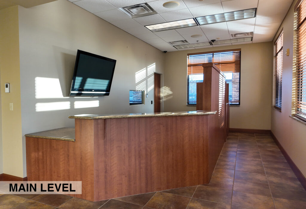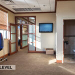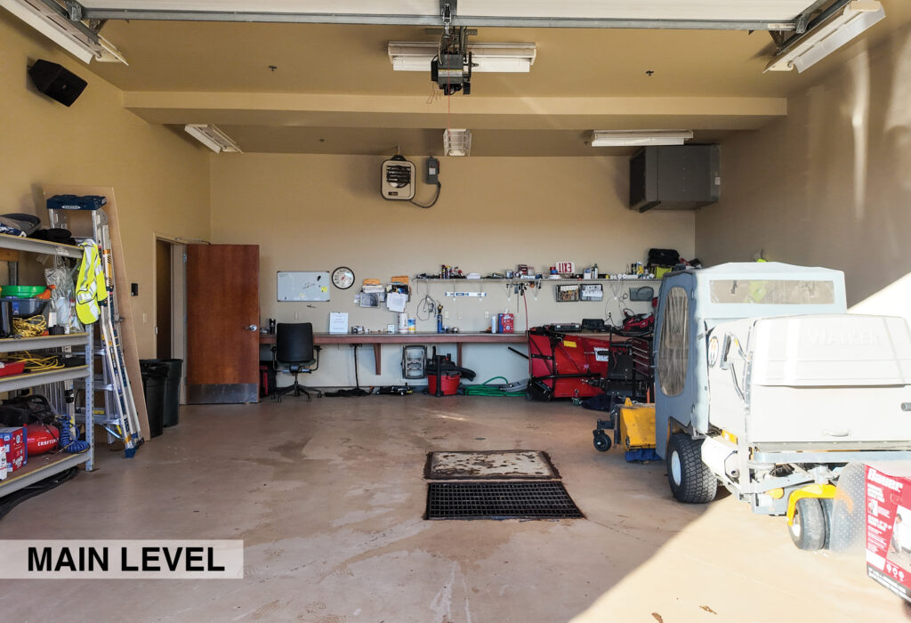 - Level One Floor Plan: reception desk, workroom, training room, storage room, secure IT space, shared server room, restrooms, and a dedicated two-stall garage/shop space complete with a 10’x16’ OH door, floor drainage, exhaust system, oil drain pit, and a heater