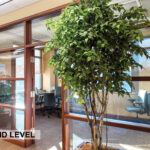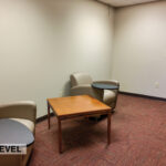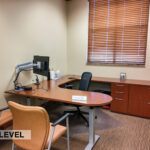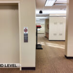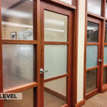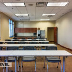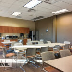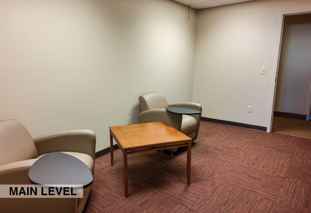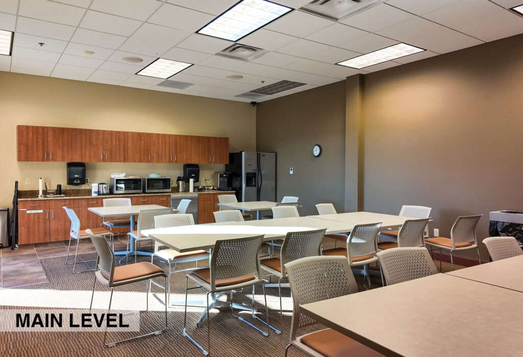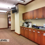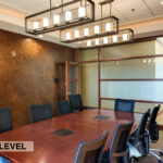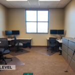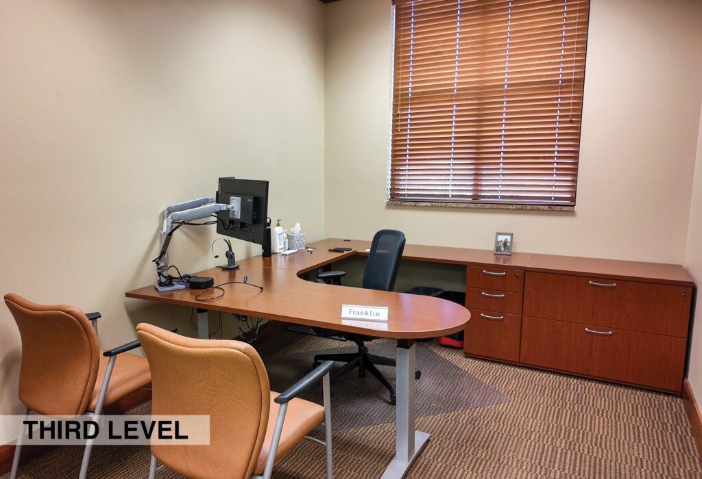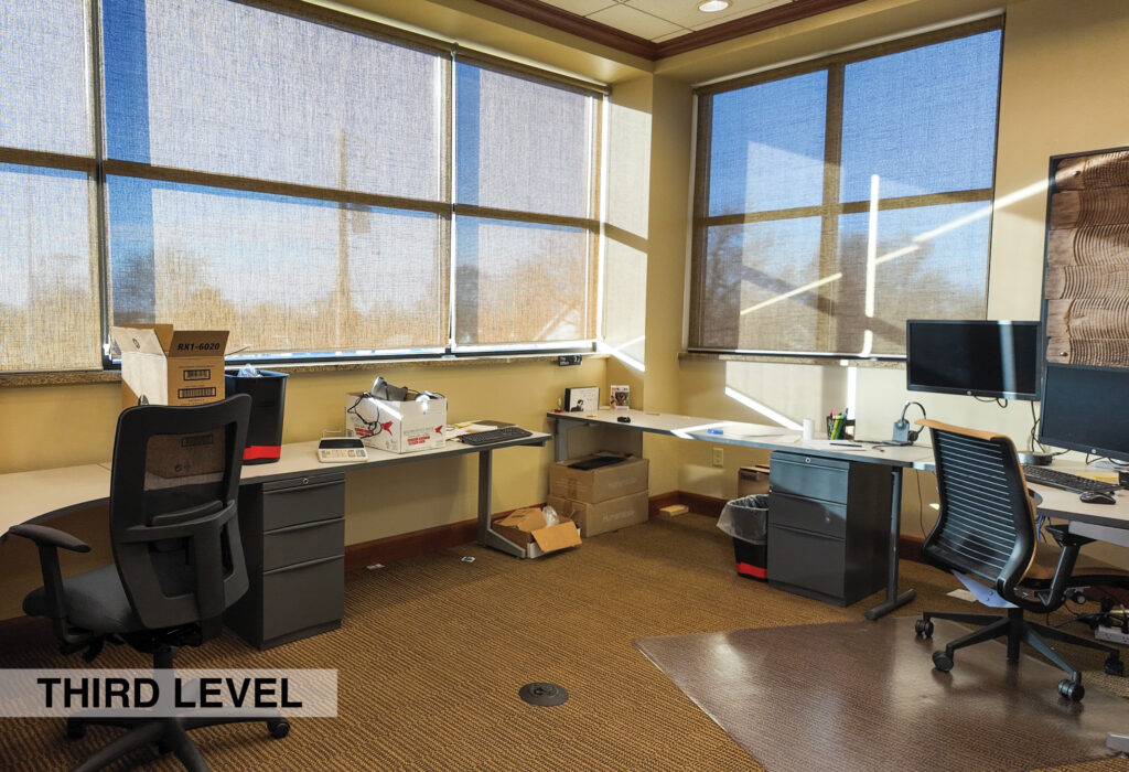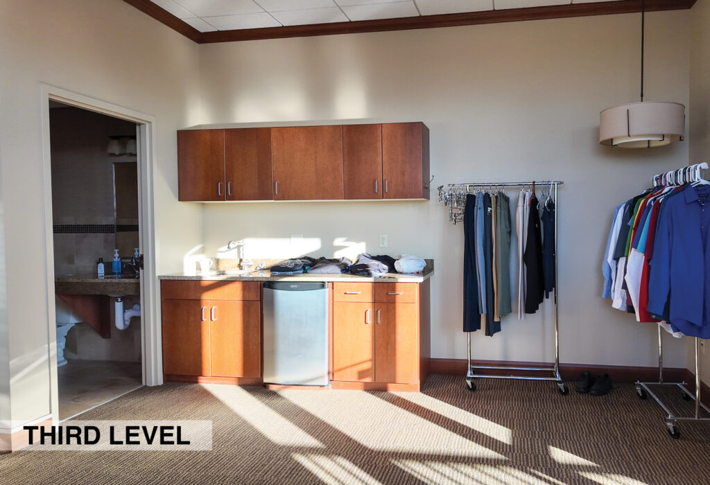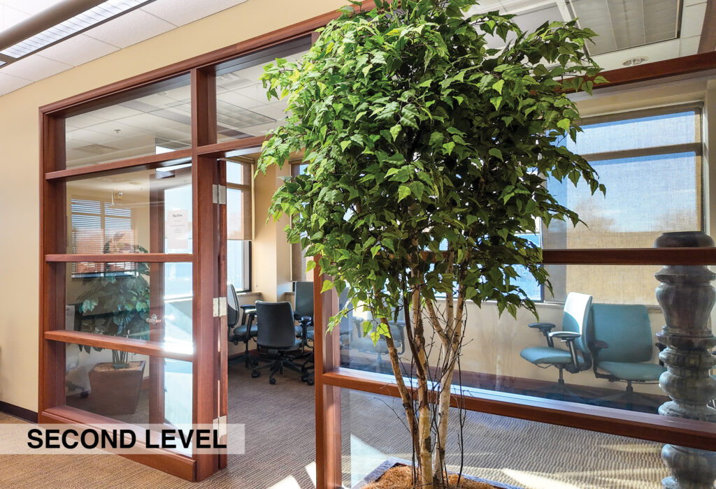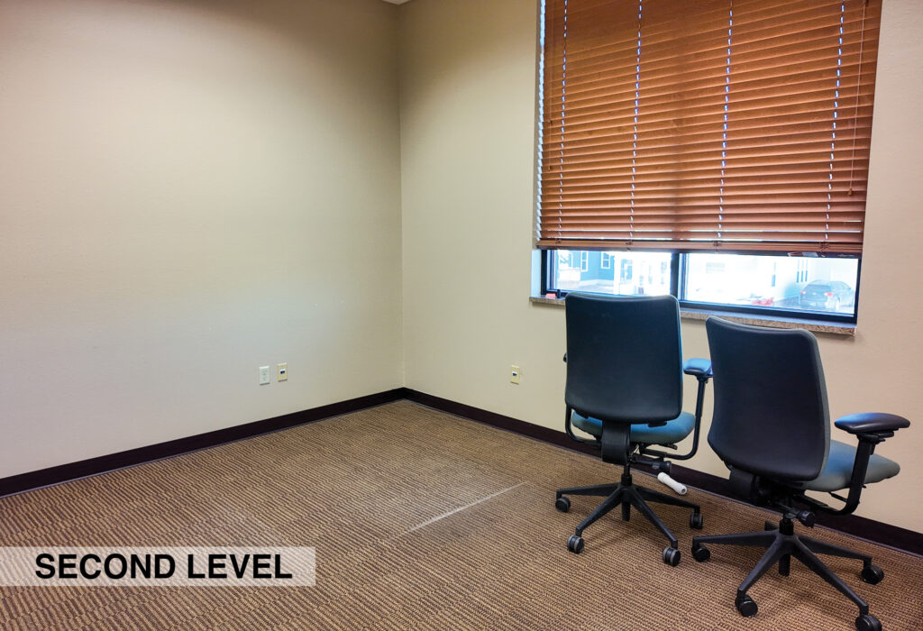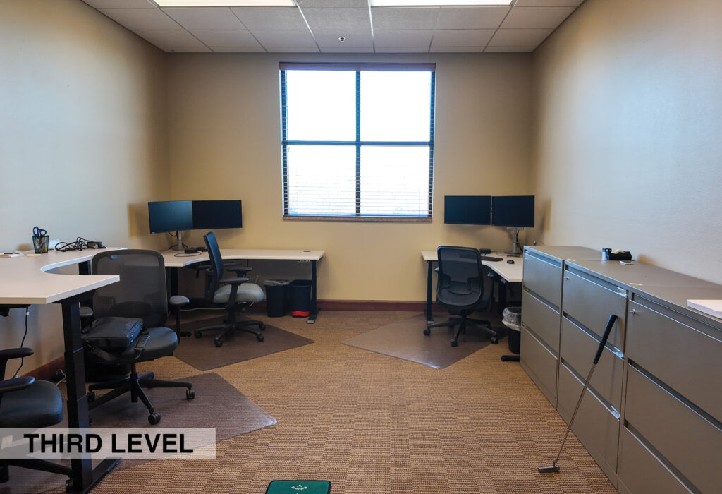 - Level Two Floor Plan: open work space, two private offices, conference room, restrooms, and built-in cabinetry (with a sink and drinking fountain)