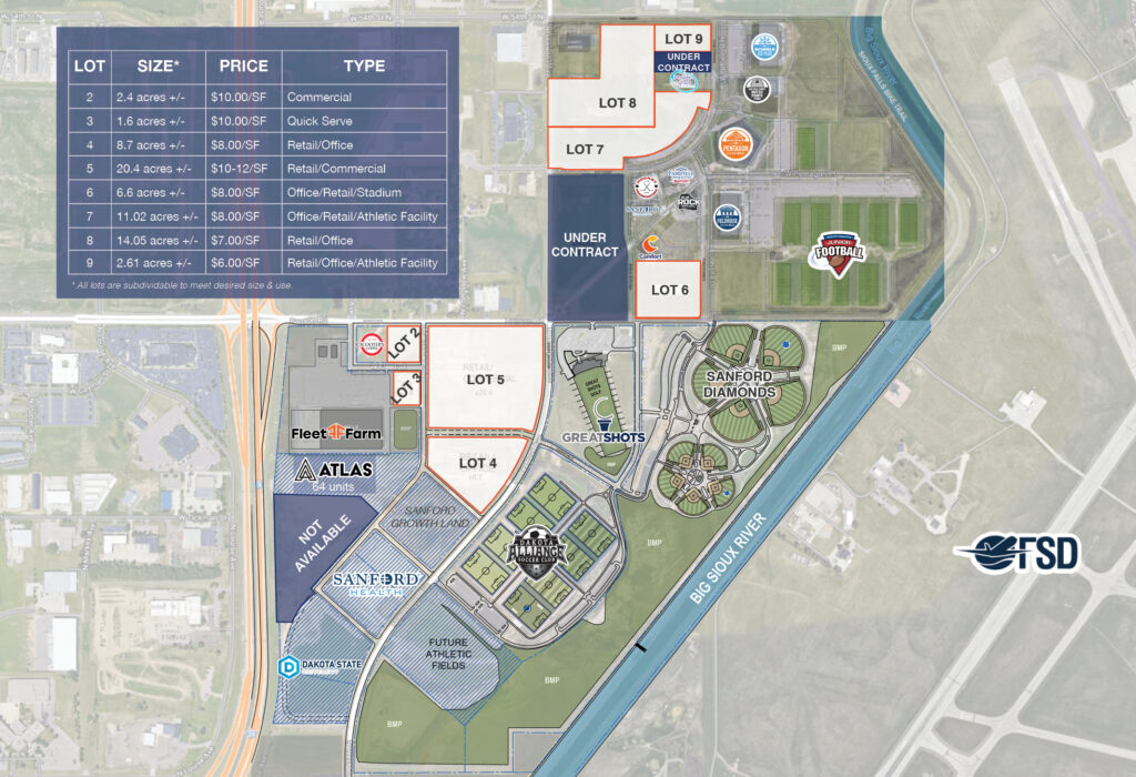 - Zoning: Commercial, QSR, Retail/Office, Stadium, Athletic Facility