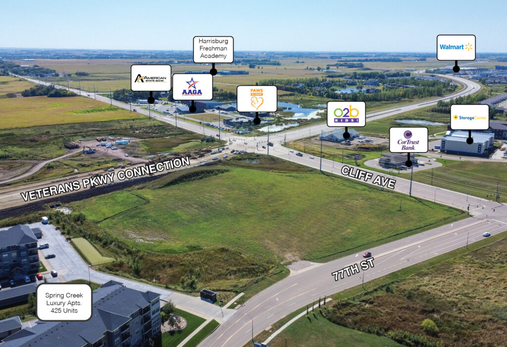 Premier land for sale at the corner of Veterans Parkway and Cliff Avenue. This site sits in a high-growth corridor fueled by transformative infrastructure investment. Cliff Avenue serves as a primary connection to Harrisburg, supporting steady demand and increasing traffic. This area is experiencing significant momentum, fueled by new residential density, including Spring Creek Luxury Apartments and Village Cooperative.