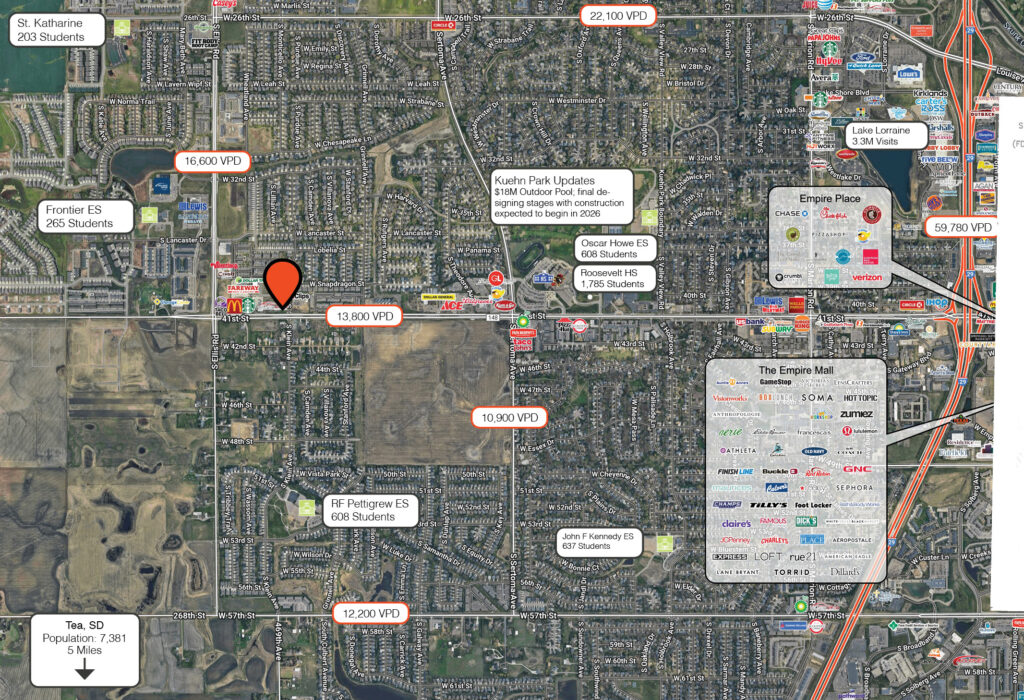 • Neighboring businesses include O2B Kids, Fareway, Starbucks, Taco Bell, Silverstar Car Wash, McDonald’s, Dollar Tree, Sanford Health, Lewis Drug, Valvoline and much more