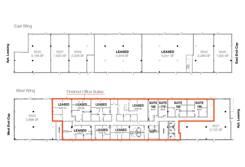 - 5 built-out spaces are available for lease: